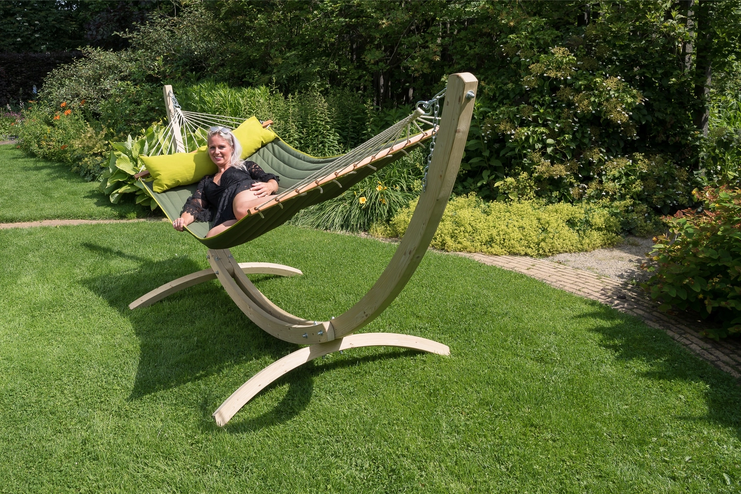 Deze fijne hangmat is afkomstig uit de Double American serie van Tropilex. De hangmat is vervaardigd van Olefin, een speciale combinatie van polyester waarbij de licht gewicht stof speciaal geschikt is voor buitengebruik. Hierdoor is de hangmat zeer sterk en duurzaam, zo gaat deze lang mee. Daarnaast zorgt de stof er voor dat de hangmat zacht en comfortabel aanvoelt. Wanneer de hangmat niet wordt gebruikt, wordt geadviseerd de hangmat op een droge plek te bewaren. De hangmat heeft een maximaal draaggewicht van 180 kg en is geschikt voor maximaal twee personen. De hangmat heeft een fijne grote oppervlakte van 210 x 120 cm, waar u heerlijk in kunt ontspannen. De hangmat wordt geleverd exclusief standaard of bevestiging set.