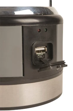 De Antares Solar reislamp van Bo-Camp is een tafellantaarn met een zonnepaneel. Door dit zonnepaneel kunt u deze lamp overdag opladen voor gebruik om donkere momenten, daarnaast kunt u de Li-Ion batterij van deze lamp opladen door middel van netstroom of vanuit uw auto. Deze robuuste lamp maakt gebruik van high power LED’s met een warme lichtkleur waardoor u gezellig rond deze lamp kunt zitten. De lamp heeft een traploze dimmer en een wit matte kap waardoor dit zachte licht altijd naar uw eigen wensen kan worden ingesteld. In de handgreep aan de bovenzijde zit niet alleen een inklapbaar ophanghaakje maar ook een kompasje. De adapter en de auto aansluiting kunnen onderin de lamp worden opgeborgen. U kunt deze lamp ook gebruiken om uw telefoon aan op laden