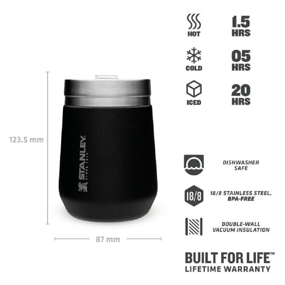 De Stanley The Everyday GO Tumbler Matte Black Pebble is een hoogwaardige thermosbeker van het gerenommeerde merk Stanley. De beker behoort tot de Go Everyday Tumbler serie en heeft een elegante zwarte kleur. De beker is gemaakt van duurzaam RVS en heeft een inhoud van 0,29 liter. De afmetingen van de beker zijn 8,7 x 8,7 x 12,3 cm en het gewicht is slechts 0,230 kg. De Stanley The Everyday GO Tumbler houdt drankjes koel gedurende 5 uur en ijs gedurende 20 uur. Warme dranken blijven tot 1,5 uur heet. De beker is BPA vrij en voorzien van een deksel van Tritan. De vacuüm isolatie en dubbelwandige isolatie zorgen voor optimale temperatuurbehoud. De beker is gemakkelijk schoon te maken en vaatwasserbestendig op het bovenste rek. De Stanley The Everyday GO Tumbler is ideaal voor outdoor avonturen en het gemakkelijk toevoegen van ijs maakt het de perfecte keuze voor warme zomerdagen.