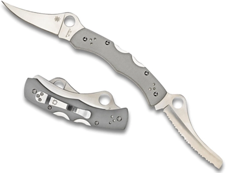 Het Dyad vouwmes van Spyderco is een tweedelig zakmes met een glad en een gekarteld mes. Zo kunt u vrijwel overal doorheen snijden. De messen zijn gemaakt van VG-10 roestvrij staal. Het mes beschikt daarnaast over nog meer voordelen, zoals twee handige duimgaten, openingsmogelijkheden met één hand en een ultieme snijkracht. Het heft is gemaakt van grijs G-10 en is voorzien van een bevestigingsclip. Met dit vouwmes kunt u vrijwel ieder snijwerk aanpakken!